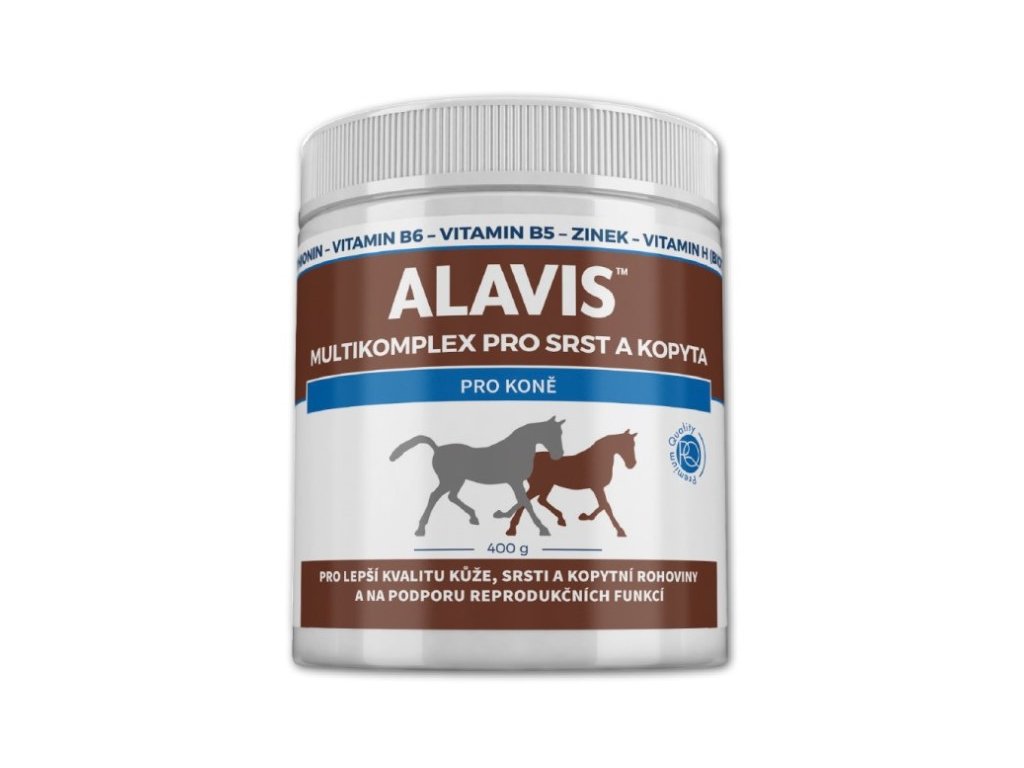 Alavis Multikomplex pro srst a kopyta koní urychluje regeneraci kůže a srsti a udržuje jejich kvalitní stav. Chrání citlivé tkáně kopyt a zesiluje rohovinu spodní části kopytní stěny.