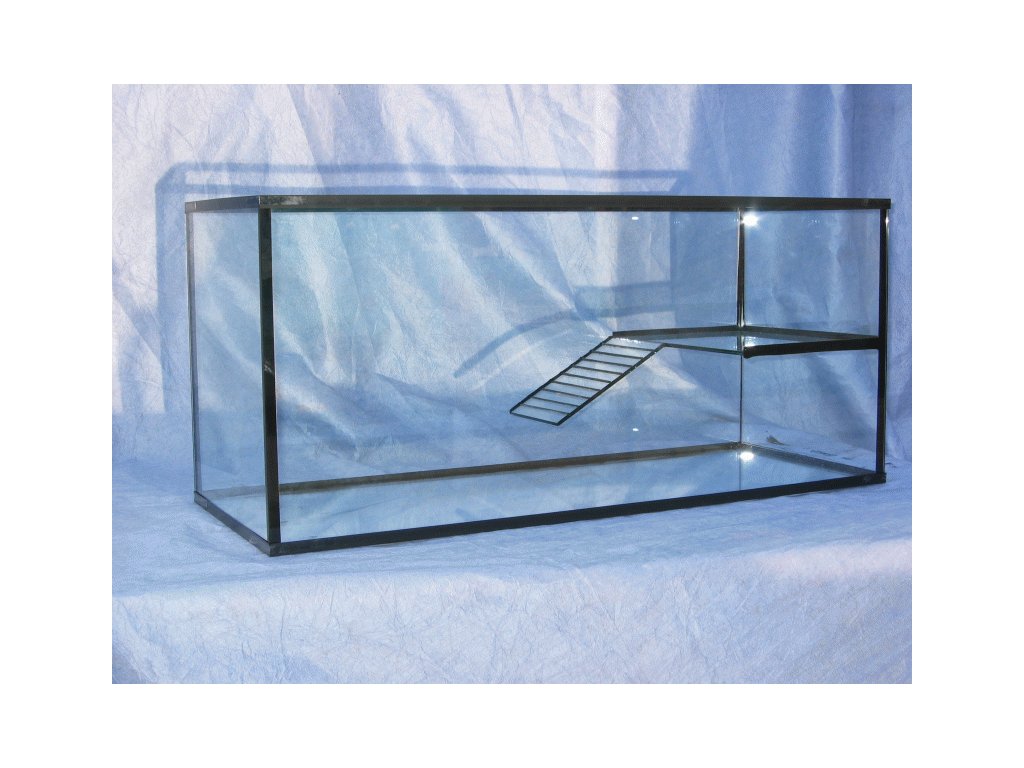 Kvalitně lepené skleněné želvárium s ostrůvkem a schůdky.