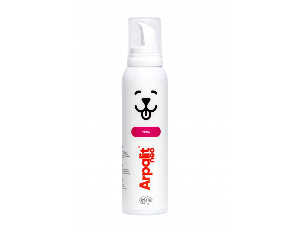 Arpalit Neo pěna 150 ml se používá k běžnému ošetření srsti i k ochraně proti opakovanému napadení parazity. Indikátor je mechanický a tichý, proto je vhodný pro zvířata náchylná na zvuk spreje. Je vhodný pro všechny typy zvířat, zejména pro domácí mazlíčky, a jemnou aplikaci v obličejové části. Hlavními insekticidními látkami přípravku ARPALIT Neo jsou permethrin a fenoxycarb. Přípravek je navíc obohacen výživnou látkou D-panthenol a silikonovou složku. Permethrin není vhodný pro kočky. Pěna čistí, myje, ošetřuje srst, má neutrální pH a nevysušuje ani nedráždí pokožku. Srst je po použití jemná, lesklá, jasně zbarvená, pružná a vyživená.