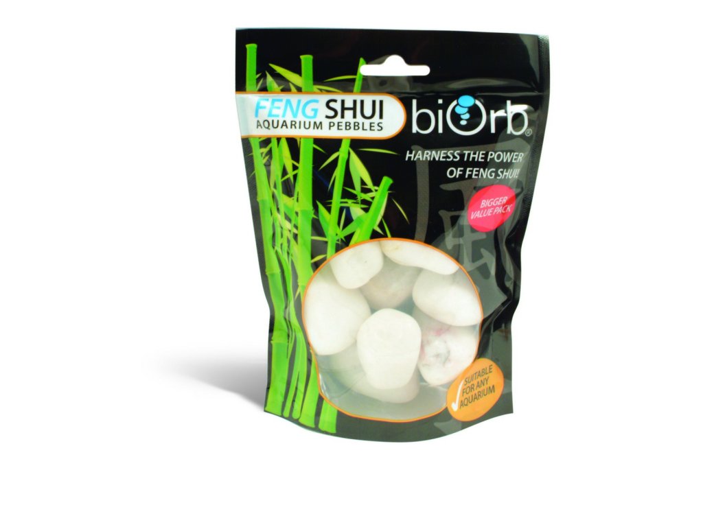 Oblázky různých barev přinášejí domovu prospěšnou energii. Hlavní na cestě k přeměně špatné energie v dobrou je čistá, tekoucí, průzračná voda s rybami. Podle filosofie Feng Shui oblázky nejen dekorují Vaše akvárium, ale podporují proudění pozitivní energie. Dodávají se v různých barevných odstínech, po umístění do vody ještě prohloubí svůj lesk. Mramor je tvrdý kámen, který nekalí vodu. BiOrb Feng Shui oblázky se dodávají ve čtyřech barvách vybraných pro své feng shui vlastnosti: