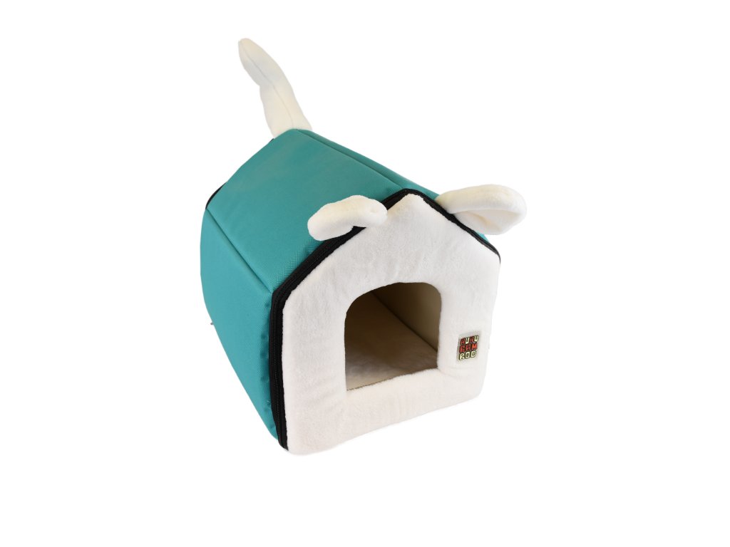 Bouda Huhubamboo je velmi elegantní domek určený pro vašeho pejska. Zatímco vnější strana je zhotovena z pevné látky, vnitřní strana je imitací kožešiny. Domek lze snadno pomoci zipů rozložit a opětovně složit, navíc jej lze prát na 30 °C. Uvnitř domku je oboustranný polštář (na jedné straně látka, na druhé kožíšek). Domek je díky své velikosti vhodný pro malá plemena pejsků, případně štěňátka či kočky.