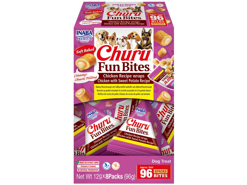 Churu Dog Fun Bites – kuřecí s náplní kuře se sladkou bramborou 8x12g