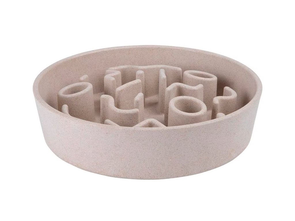 Stylové pomalé krmítko pro kočky má průměr 13 cm.