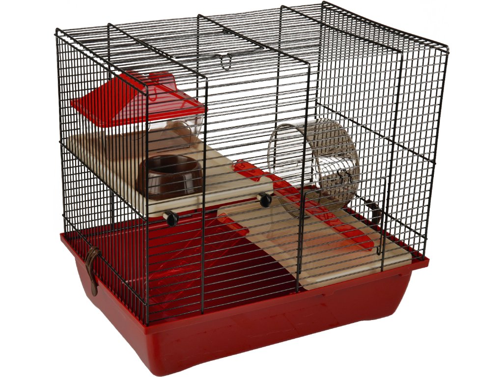 Praktická klec pro křečky a ostatní malé hlodavce. Je vyrobena z odolného zdravotně nezávadného materiálu. Díky plastovému dnu je velmi dobře udržovatelná v čistotě. Rozměry 41,5 × 28,5 × 38 cm.