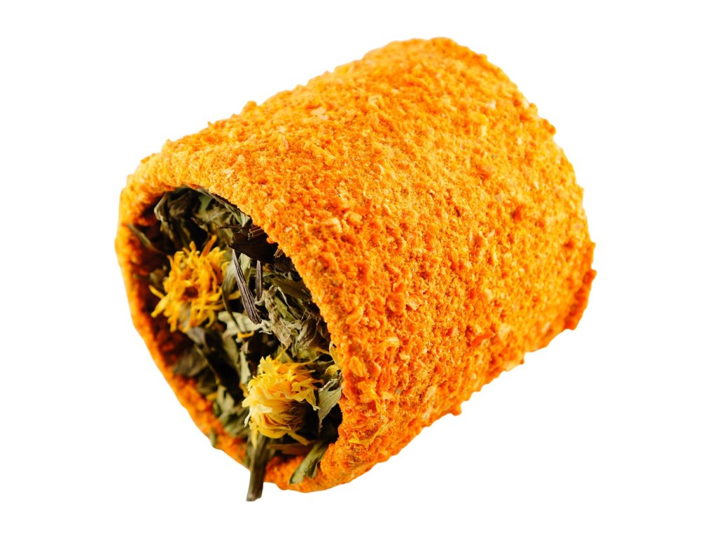 Plněný tunel z celulózy obalený kousky sušené mrkve, to je hračka i pamlsek pro křečky, potkany, myši, morčata, králíky a další drobné hlodavce. Délka tunýlku je 9 cm, průměr 8 cm. Z jedné strany je tunýlek naplněný směsí obilovin, z druhé listy kopřivy. Složení: mrkev, listy kopřivy, květy měsíčku, žlutá kukuřice, pšenice, petržel, červená kukuřice, čirok, zelený hrách, žlutý hrách, hnědý hrách, slunečnice černá a pruhovaná, dari, proso žluté a červené, celulóza, škrob.