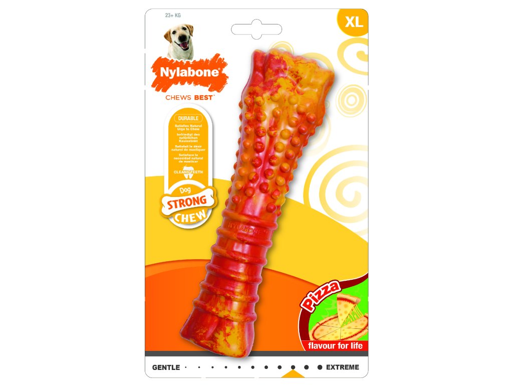 Strong Chew Pepperoni Pizza je velmi odolná hračka, která uspokojuje přirozenou potřebu žvýkání a je navržena pro velké psy (nad 23 kg) se silnými čelistmi a skusem. Hrbolky během žvýkání masírují dásně, redukují tvorbu plaku a zubního kamene a pomáhají tak účinně čistit zuby. Má vůni a příchuť pizzy.