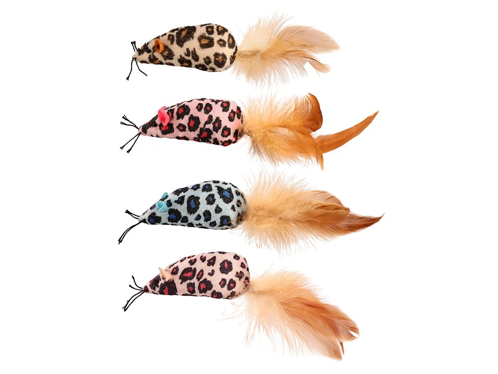 Huhubamboo myš s peřím – 1 ks (mix barev) 4 barevné varianty hračky.
