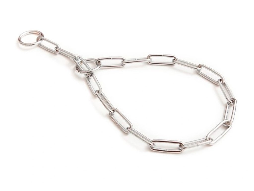Řetízkové stahovací obojky s malými očky jsou vyrobeny z pevného materiálu. Všechny jeho díly jsou svařeny a tak obojky dosahují maximální pevnosti. Jsou vhodné pro malá, střední a velká plemena. Rozměry obojků jsou uvedeny v tloušťce drátu a celkové délce k vnitřní straně kroužků.