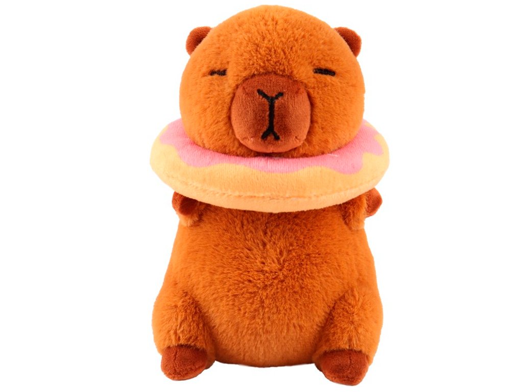 Huhubamboo plyšová kapybara donut. Rozměry hračky jsou 150x95x90 mm.