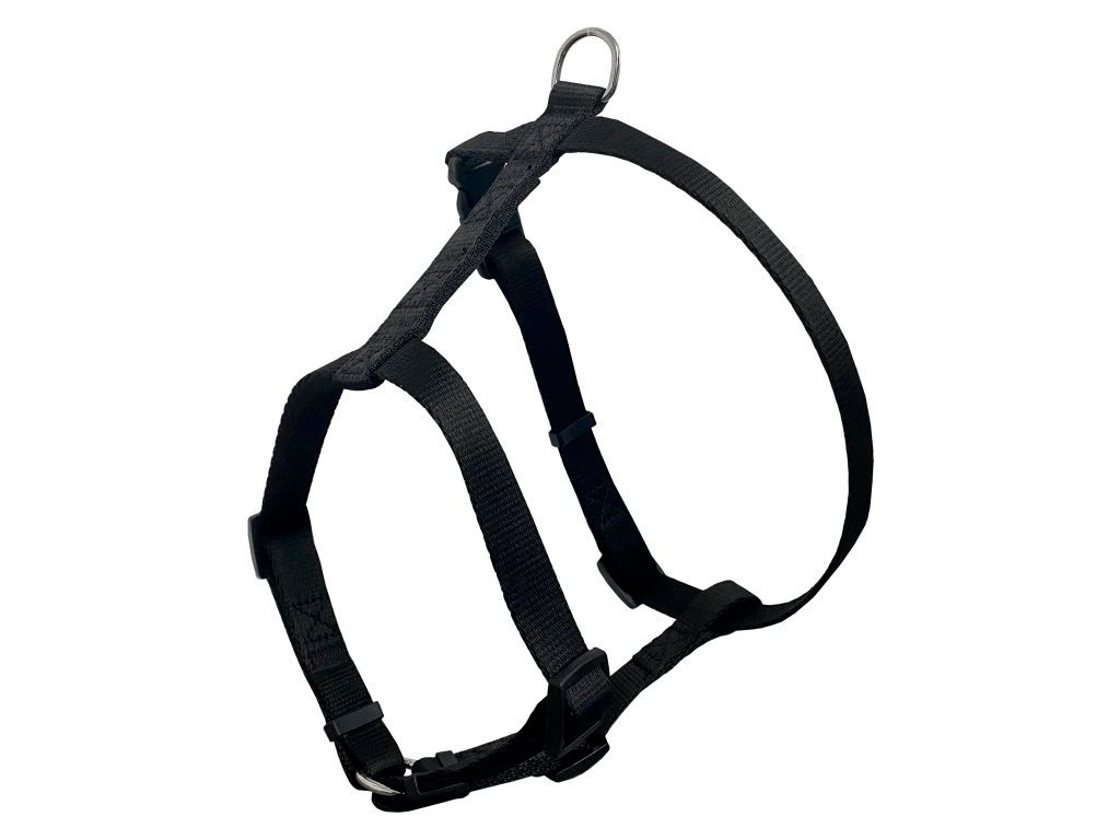 Postroj pro psy vyrobený z popruhu v jednobarevném provedení (černá barva).