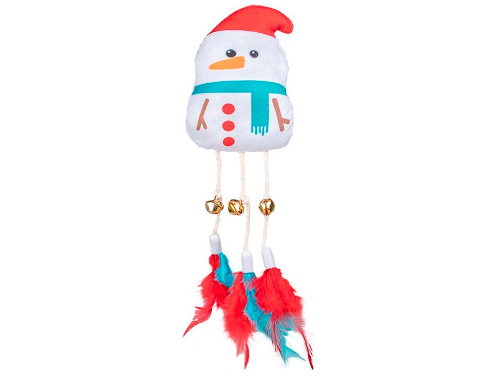 Vánoční hračka pro kočky ve tvaru sněhuláka s catnipem.