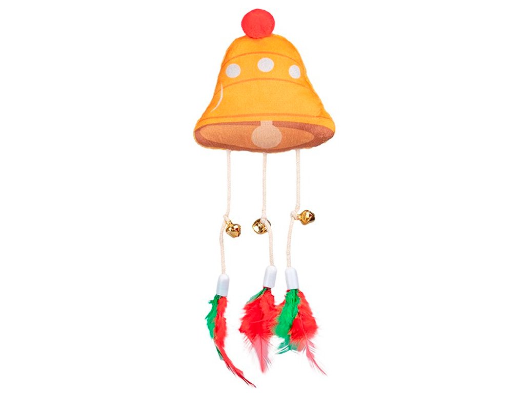 Vánoční hračka pro kočky ve tvaru zvonečku s catnipem.