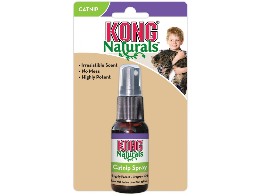 KONG catnip sprej pro kočky. Catnip neboli šanta kočičí je přírodní nenávykovou bylinou, která povzbuzuje do hry až 70 % koček. Její vůně je pro kočky velice povzbudivá a zároveň uklidňující, navozuje tak pocit pohody a podporuje radost ze hry. Vhodná pro zklidnění při cestách k veterináři a k uklidnění. KONG Naturals catnip spray je vytvořen z koncentrovaného oleje ze šanty kočičí pěstované v Severní Americe. KONG Naturals jsou ekologické produkty pro kočky. Všechny suroviny a oleje jsou vyrobené z přírodních, obnovitelných zdrojů. Tyto produkty jsou navrženy tak, aby oslovily přirozené instinkty kočky.