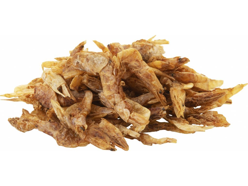 Krevety, sušené, 100% přírodní doplňkové krmivo určené pro psy, kočky, plazy, ryby (zejména KOI kapry), ptáky a hlodavce.