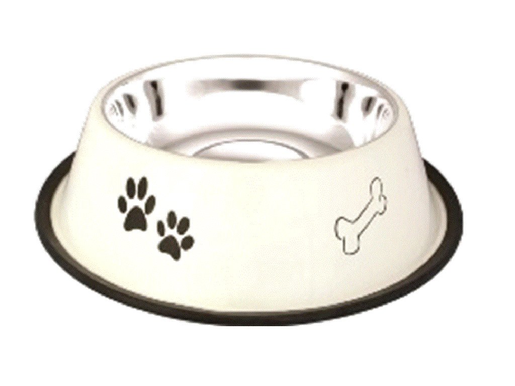 Nerezová miska Huhubamboo je stylová, má dlouhou živostnost a je snadno omyvatelná. Má průměr 33 cm a je bílá s potiskem tlapek a kostí. Miska má protiskluzovou gumovou úpravu zabraňující vylití tekutiny. Vhodná na jídlo i pití. Atraktivní vzhled vhodný do každého interiéru.