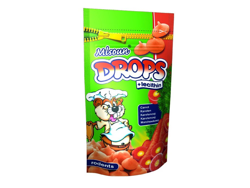 Mlsoun Drops pro hlodavce s příchutí karotenu a obsahující lecitin, který se podílí na mentálních a nervových procesech. Doplňkové krmivo pro hlodavce, které můžete podávat každý den. Vhodné jako zpestření denního krmení. Obsah balení 75 g.